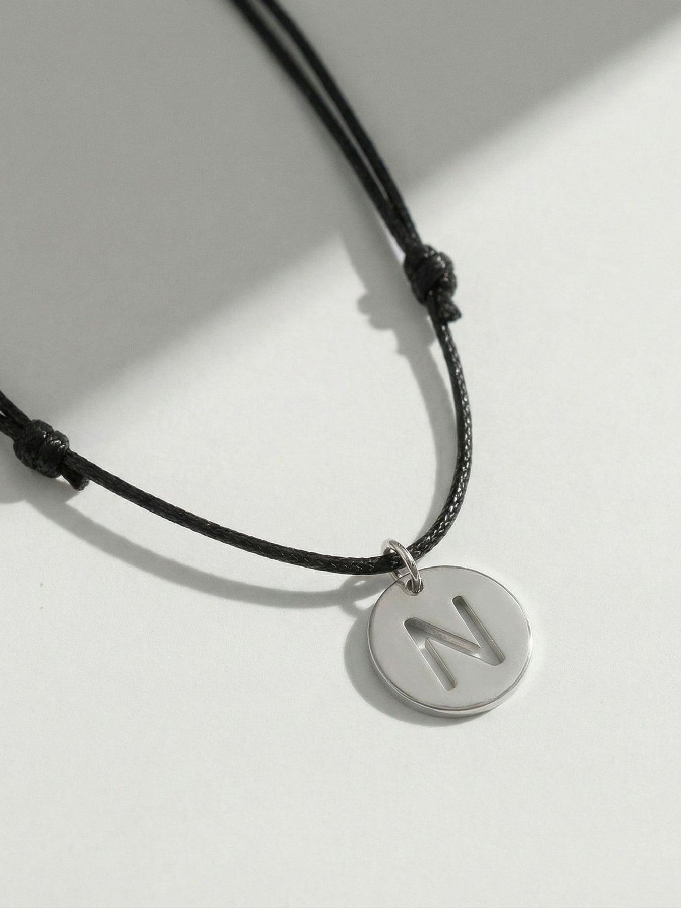 Collar Cuero Letra Calada - Plata